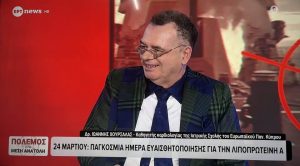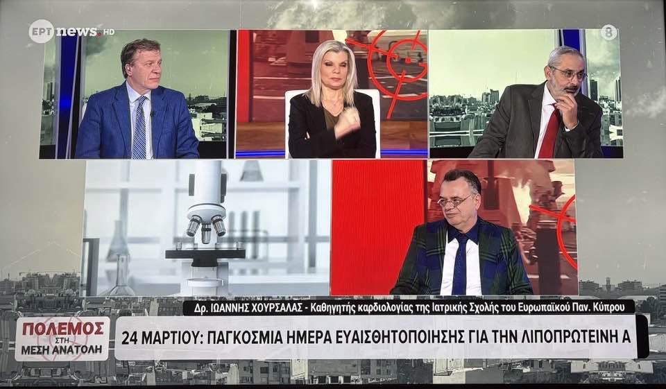 Προσκεκλημένος στην ΕΡΤ news στην εκπομπή Off the Record με τους δημοσιογράφους Άγγελο Μόσχοβα, Λίδα Μπόλα, Βαγγέλη Παπαδημητρίου με αφορμή την παγκόσμια ημέρα ευαισθητοποίησης για τη Λιποπρωτεΐνη α.